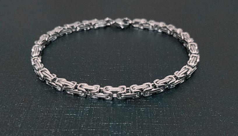 Bracelet en acier inoxydable couleur argent.