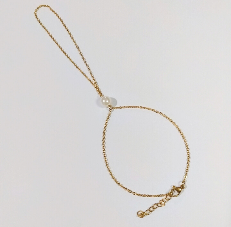 Chaîne de main en acier inoxydable couleur doré et perle de fantaisie blanche nacrée