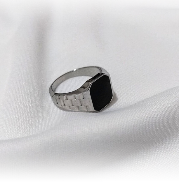 Chevalière en acier inoxydable couleur argent