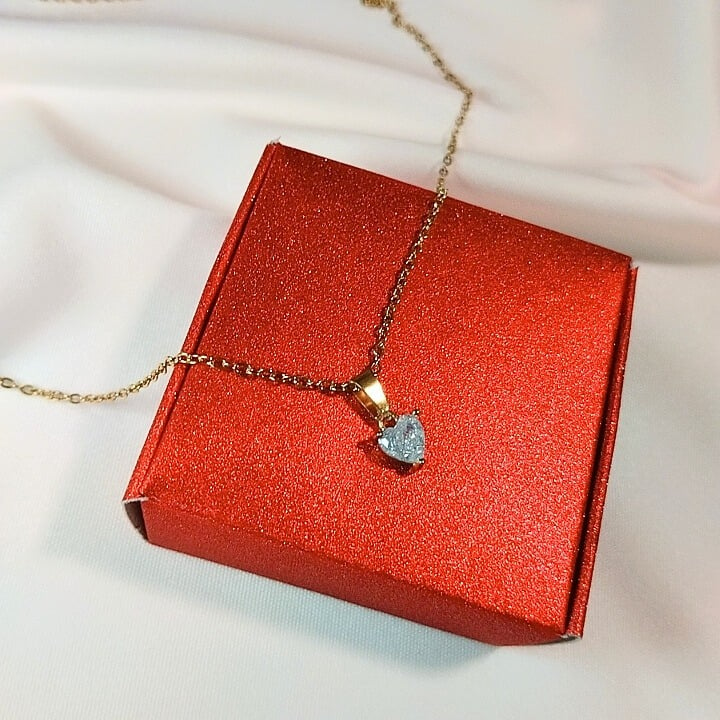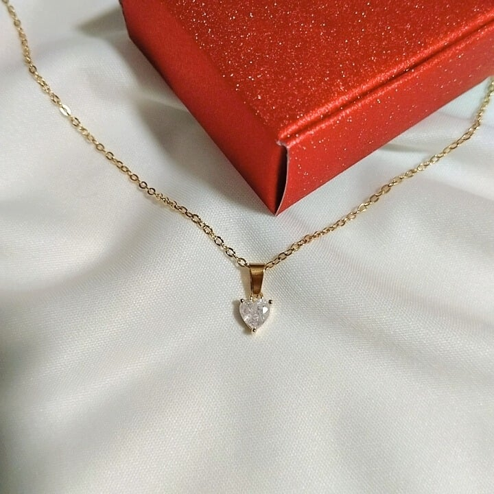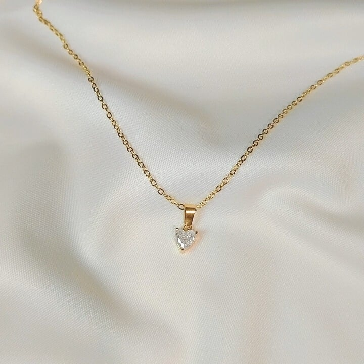 Collier en acier inoxydable avec pendentif cœur en acier inoxydable et oxyde de zirconium.