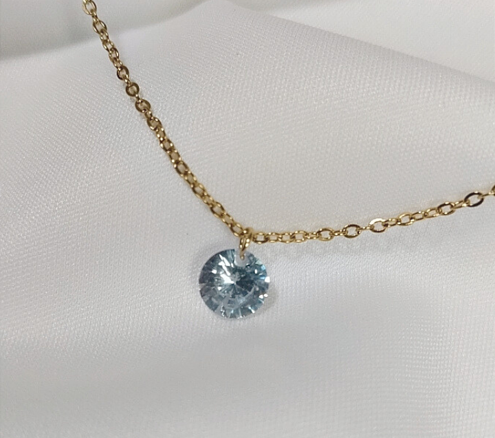 Collier en acier inoxydable plaqué or jaune + pierre blanche (zirconium)